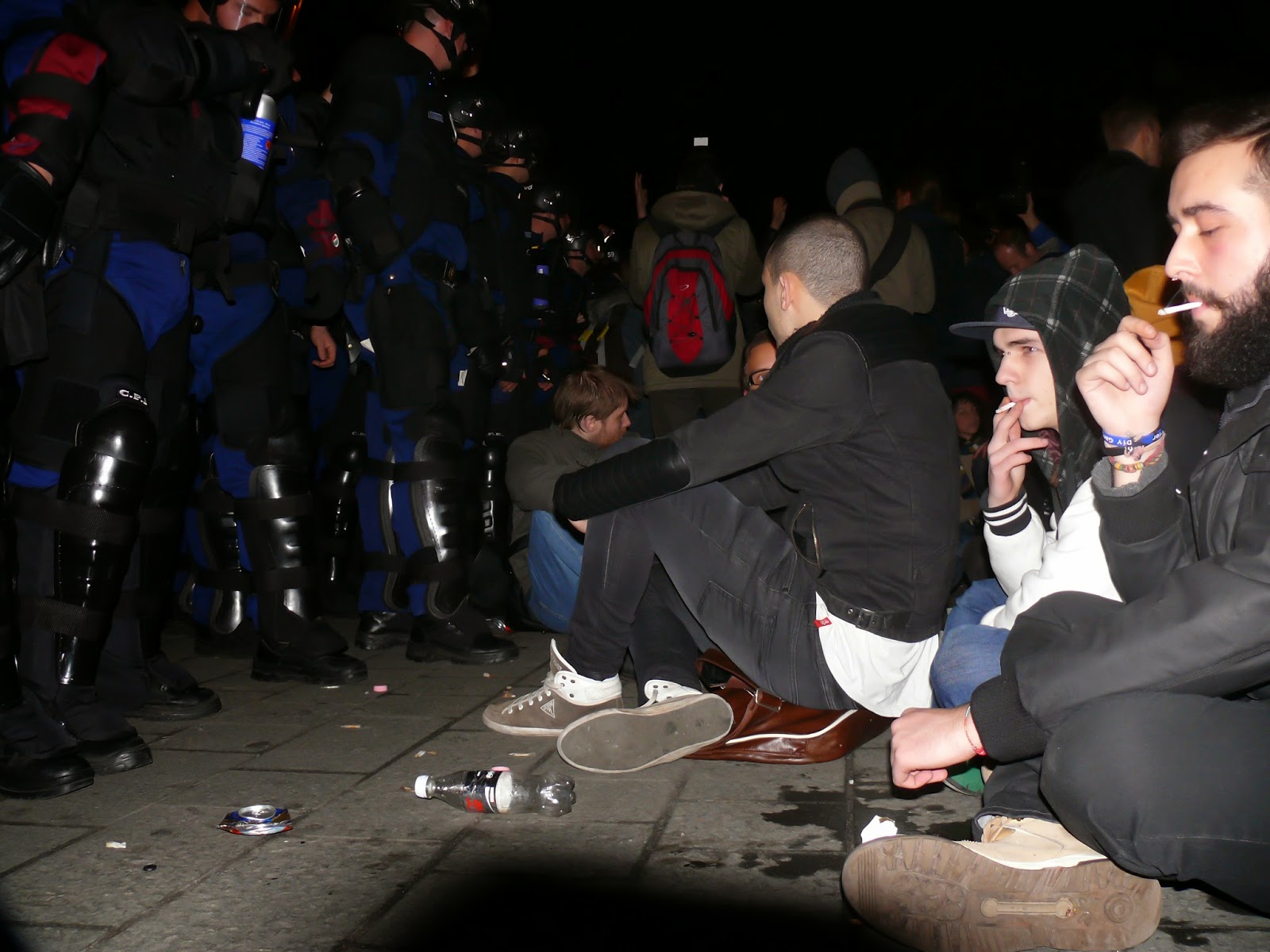Ám a húsz-harminc táncikáló, a rendőrsorfal előtt hintázó, fröccsöző hülyegyerek számára a tüntike buli. Buli van a téren, meleg a tömegben, elszáll a gandzsafüst, hátul pedig béget a sok kis birka. Leng a csegevarás zászló, nem tiltott a sarló-kalapács és el lehet takarni az arcot is, végtére is néha befúj közéjük a hideg szél. Nem gond, hogy CCCP van pólón, közben skandálják, hogy "ruszkik haza", hisz anyuka nem magyarázta el a történelmet. A magyart se, nemhogy mást. A ruszki, a szovjet, és Orbán, mint törpe-Putyin, Azerbajdzsán és Norvégia. Svájci frank, forintosítás és netadó. Orbán takarodj, megunt a nép. Jöjjön a böszme, vagy akárki más, csak legyen végre változás. Hiszik, az út ez lehet, leng hát a zászló és gurulnak az üvegek.